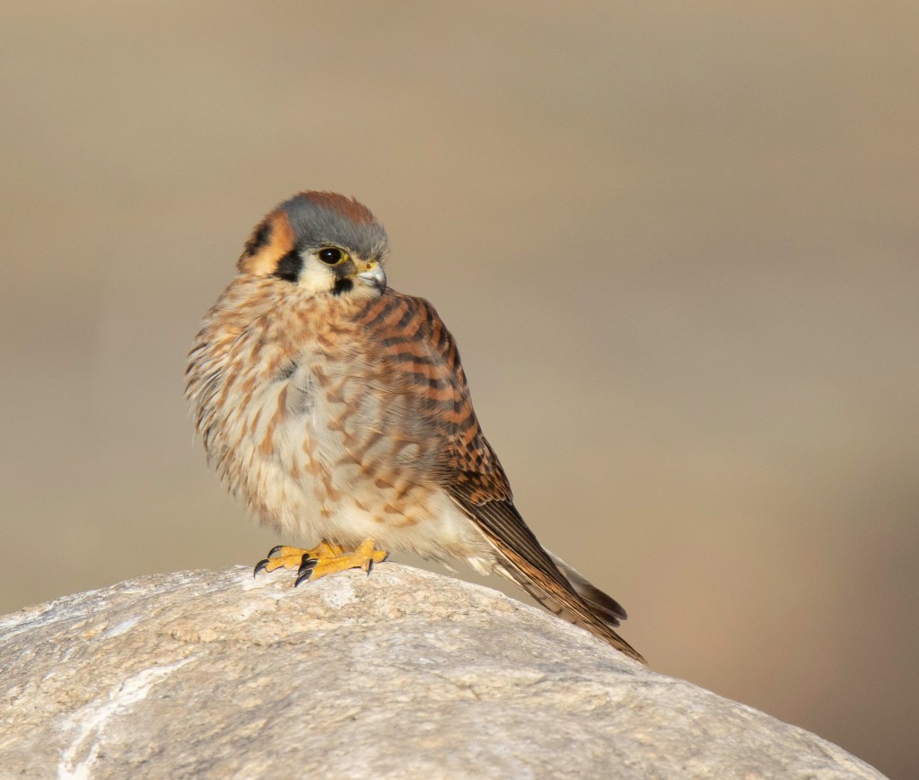 These are beautiful little birds that are relatively easy to find and photograph. They are widespread across North America and are doing well, not threatened or endangered and fun to watch. They like open fields and border areas. They use trees, power lines, fences and rocks to perch on. They hover over an area to hunt and then dive onto their prey. They eat insects, lizards, small birds and mammals.
