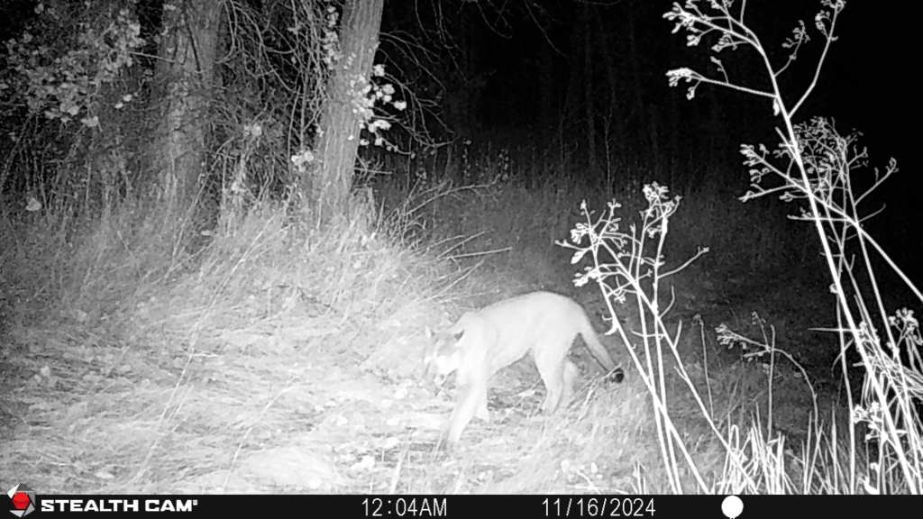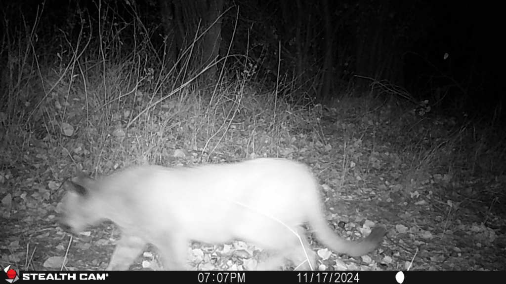 For the last few years, I have set up my trail cameras in late August and collected them at the end of March. This year I’ve decided to leave them out and track animal activity all year. Usually, Mountain Lions make their first appearance in November. I’m not sure if they are around much in the summer which is one of the reasons I’ll leave the cameras out. One year I had cameras placed from July until the end of March and stopped getting pictures of Lions in February. Based on incomplete data I’ve concluded they frequent this area mostly in winter and head to higher ground in the summer. We’ll see.
