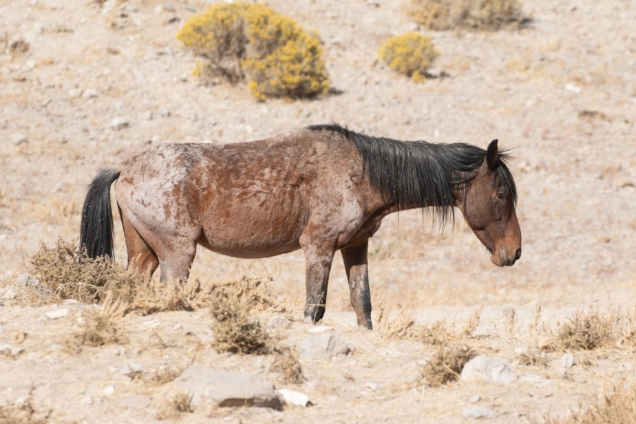 This Virginia Range horse is one of many displaying a painful skin condition. Because these horses are wild this kind of condition is almost impossible to treat. The condition may be the result of overpopulation and poor feed. The BLM does not manage the Virginia Range horses, Advocacy groups and the Nevada Department of Agriculture have a cooperative agreement. I alerted the group that manages these horses about this situation, and nothing has been done to help this horse.