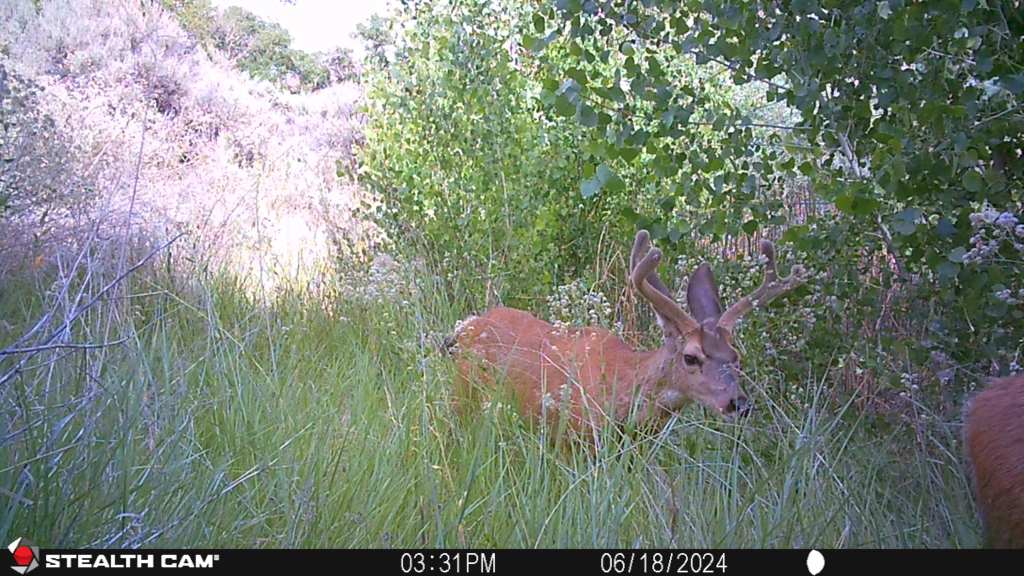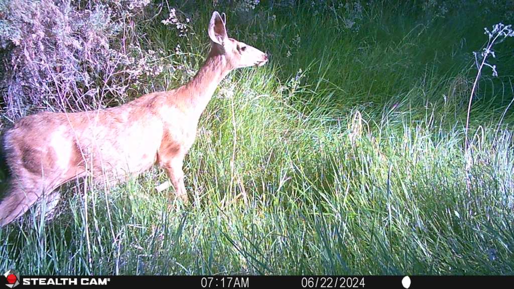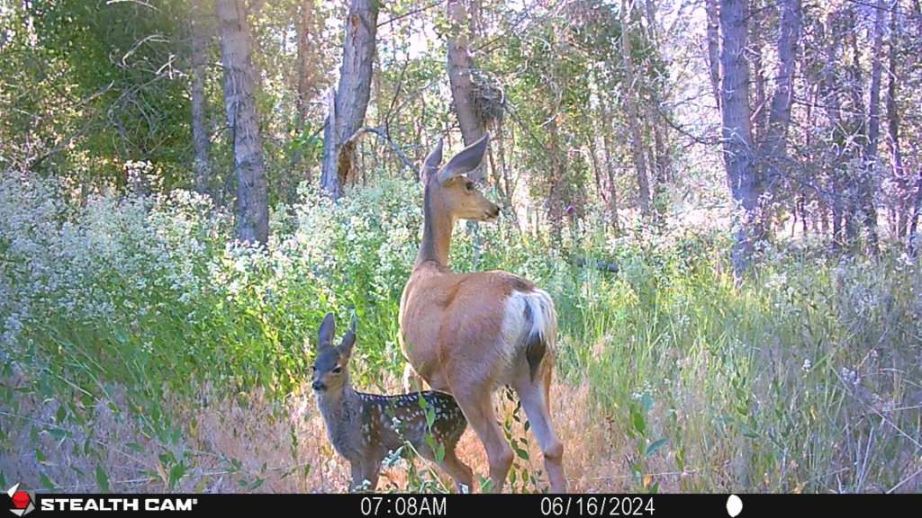 Lots of fawns showing up on the trail cameras this summer. It looks like the first week of June is when most of them are born. I am seeing at least one set of twins which is not unusual for Mule Deer. I caught some interaction between bucks and fawns which is interesting. More bucks are hanging out with does through the summer than I have seen in the past. They usually break away into bachelor groups until the fall. Animal behavior is always interesting.