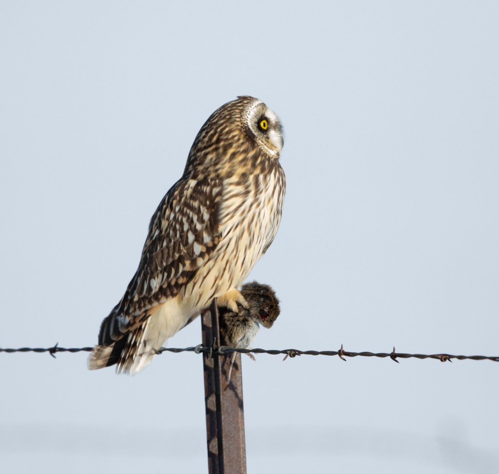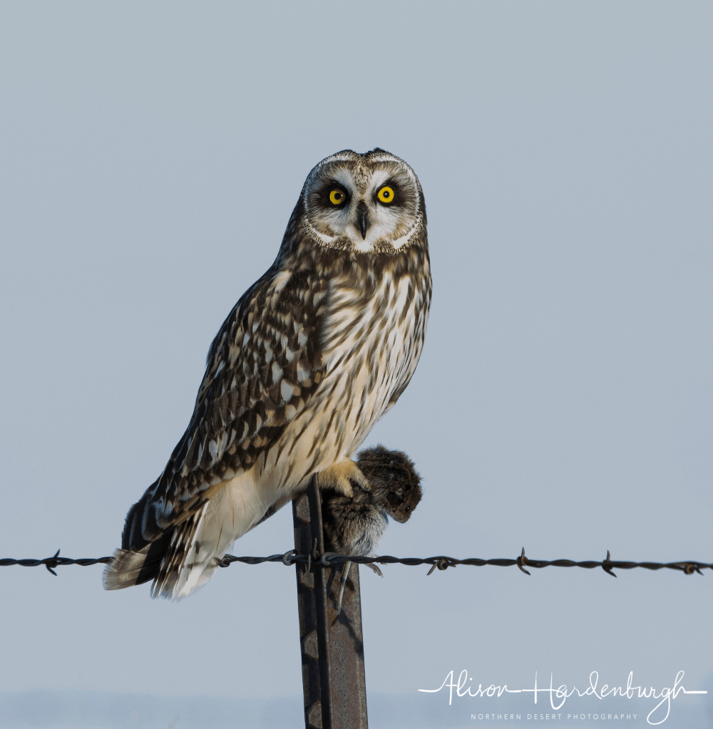 Short-eared Owls are easier to find this time of year. They are unusual for owls as they can be active while it is light enough to photograph them. I find plenty of sleepy Great Horned owls early in the morning getting their naps on and while I am grateful for the opportunity to take their picture its exciting to see owls going about their owl business hunting and eating.